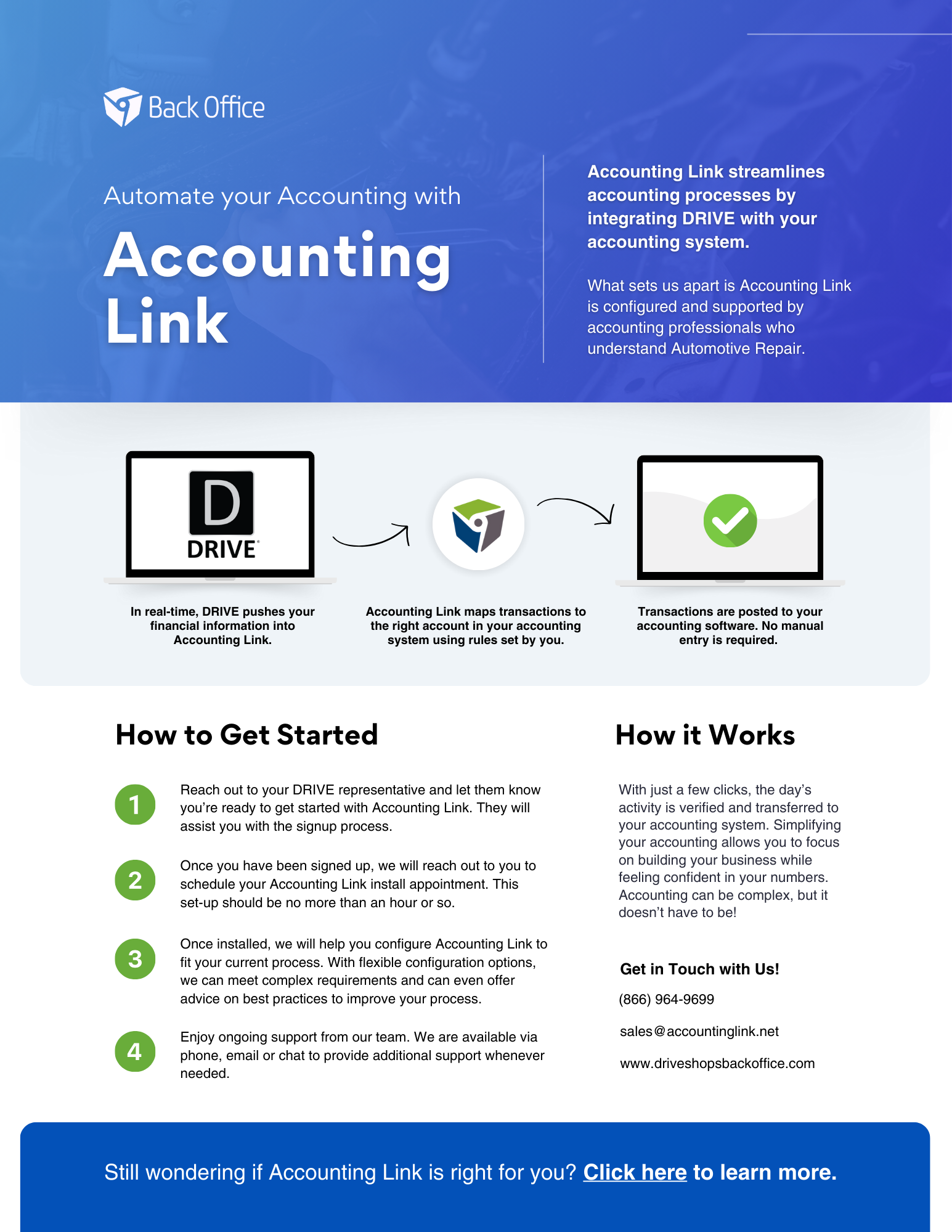 Tried and true in the automotive repair industry for 23+ years, Accounting Link Desktop sets the standard.